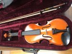 This VENETIAN SERIES Violin is a hand-crafted copy of the original Stradivarius instrument. It features a solid spruce top, solid maple back & sides, ebony fingerboard, pegs, chinrest, endpin & tailpiece.The 4 fine tuners make it easier for beginners to tune the strings.